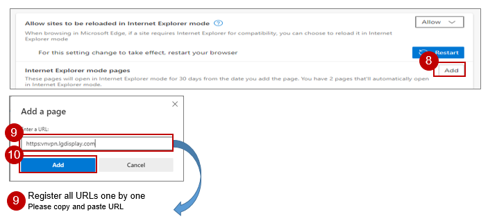 3. After entering the URLs on the left in order, click the 'Add' button to register.
