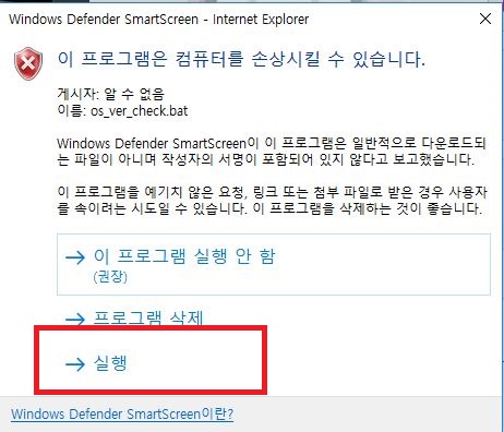 화면 아래에 다음 화면이 표시되면 실행을 클릭합니다.