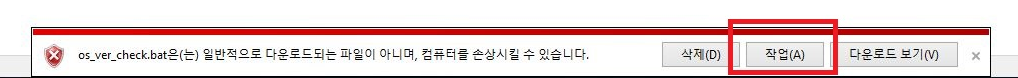 화면 아래 다음 화면이 표시되면 작업을 클릭합니다.